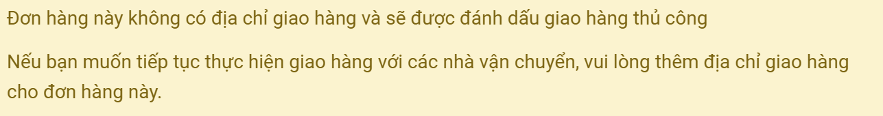 Ghi chúNgười bán  thêm ghi chú cho nhà vận chuyển. Đây là các ghi chú hỗ trợ cho việc giao - nhận một cách tốt hơn. Ví dụ như "hàng đồng kiểm", "giao trong giờ hành chính", "hàng dễ vỡ",...